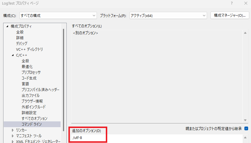 VisualStudioで実行する際にutf-8のオプションを指定する方法は以下の通りです