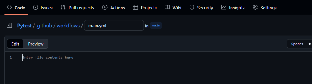 上記をクリックすると以下の画像のような画面になると思うので、そこに参考サイト内の「python-ci.yml」の内容をそのままコピペします