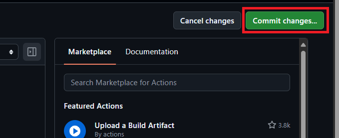 コピペしたら画面右上にある「Commit changes...」をクリックし、変更内をGitに登録します